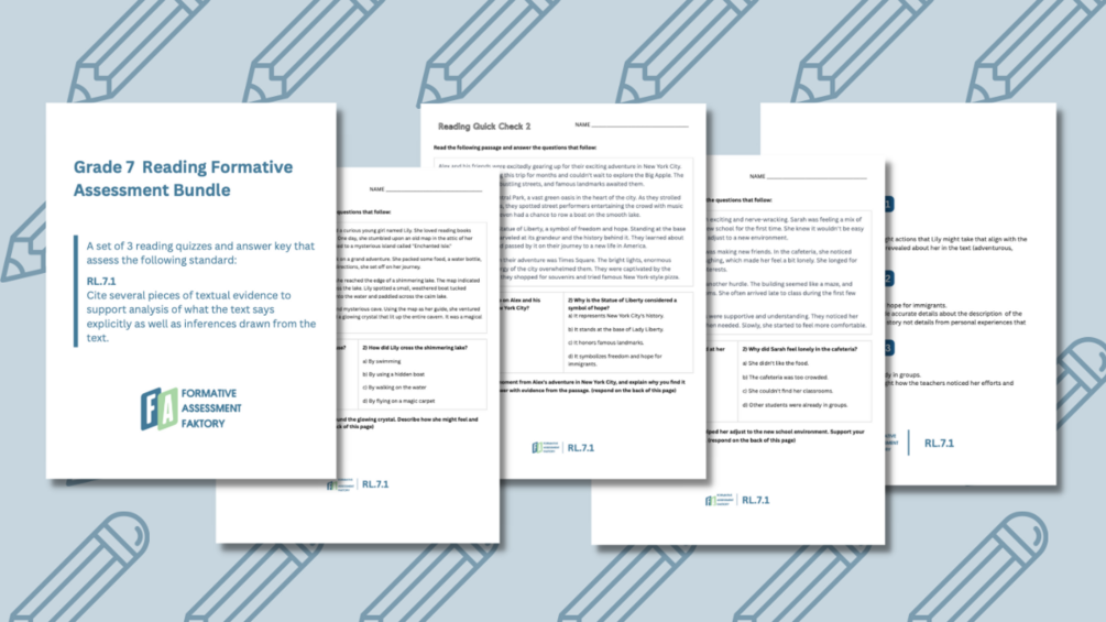A set of 3 reading quizzes and answer key that assess the following standard: